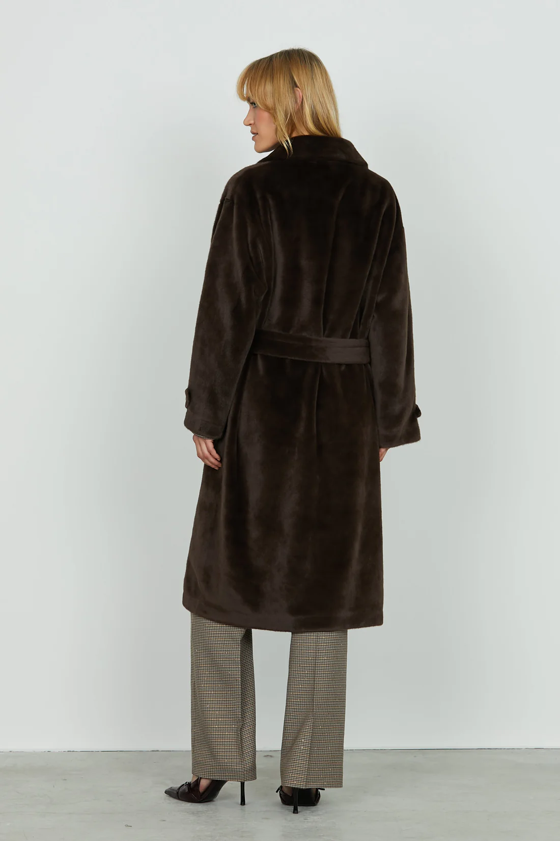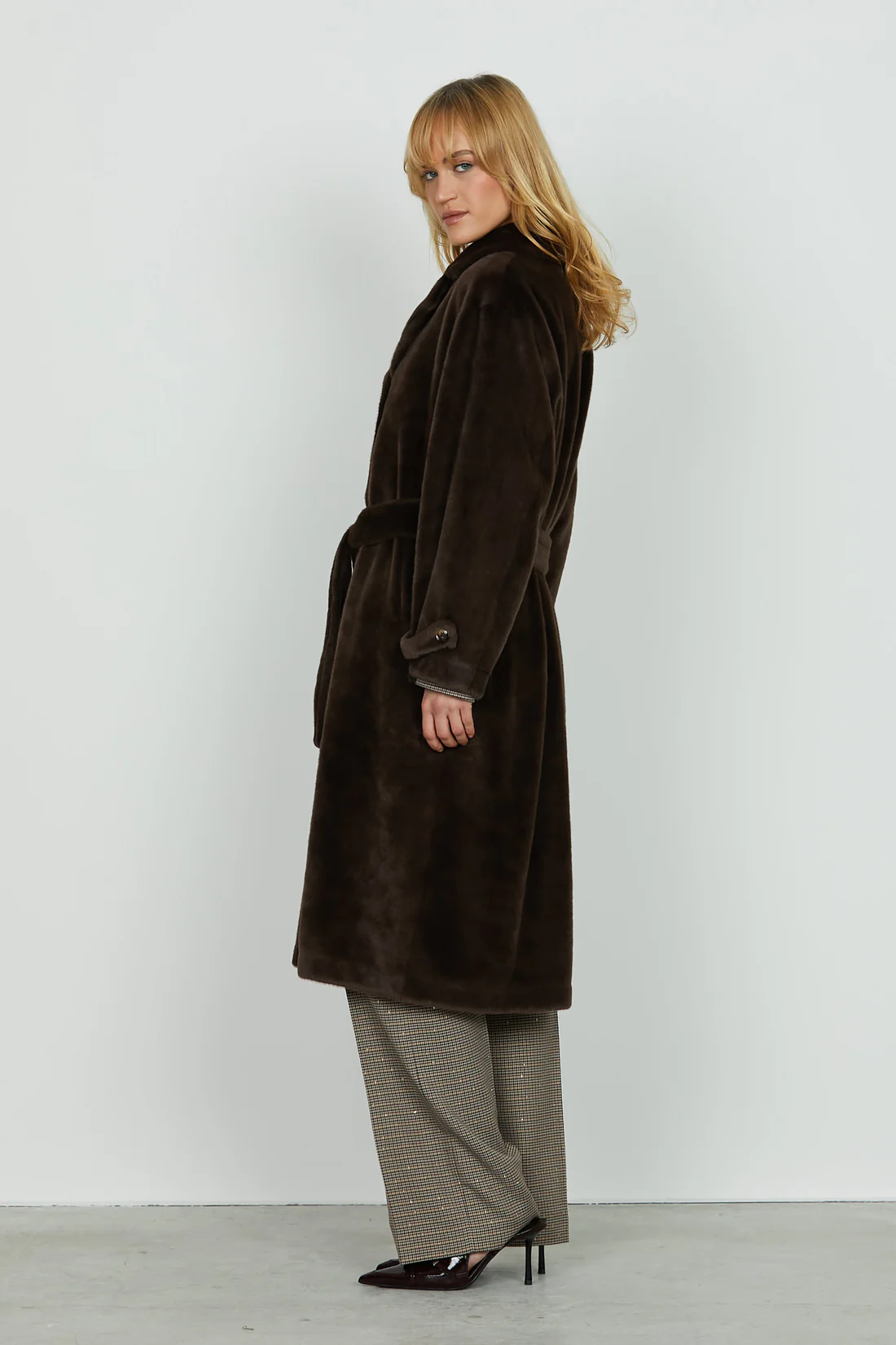 El abrigo largo de piel sintética CHAMLET combina calidez, estilo y conciencia ética en una sola prenda. Su tejido suave y envolvente ofrece máximo confort, mientras que las mangas largas, las solapas en los hombros y los bolsillos funcionales aportan un toque de elegancia práctica. El cinturón ajustable realza la silueta con distinción, convirtiéndolo en una opción sofisticada y libre de crueldad animal, perfecta para los días más fríos del invierno.