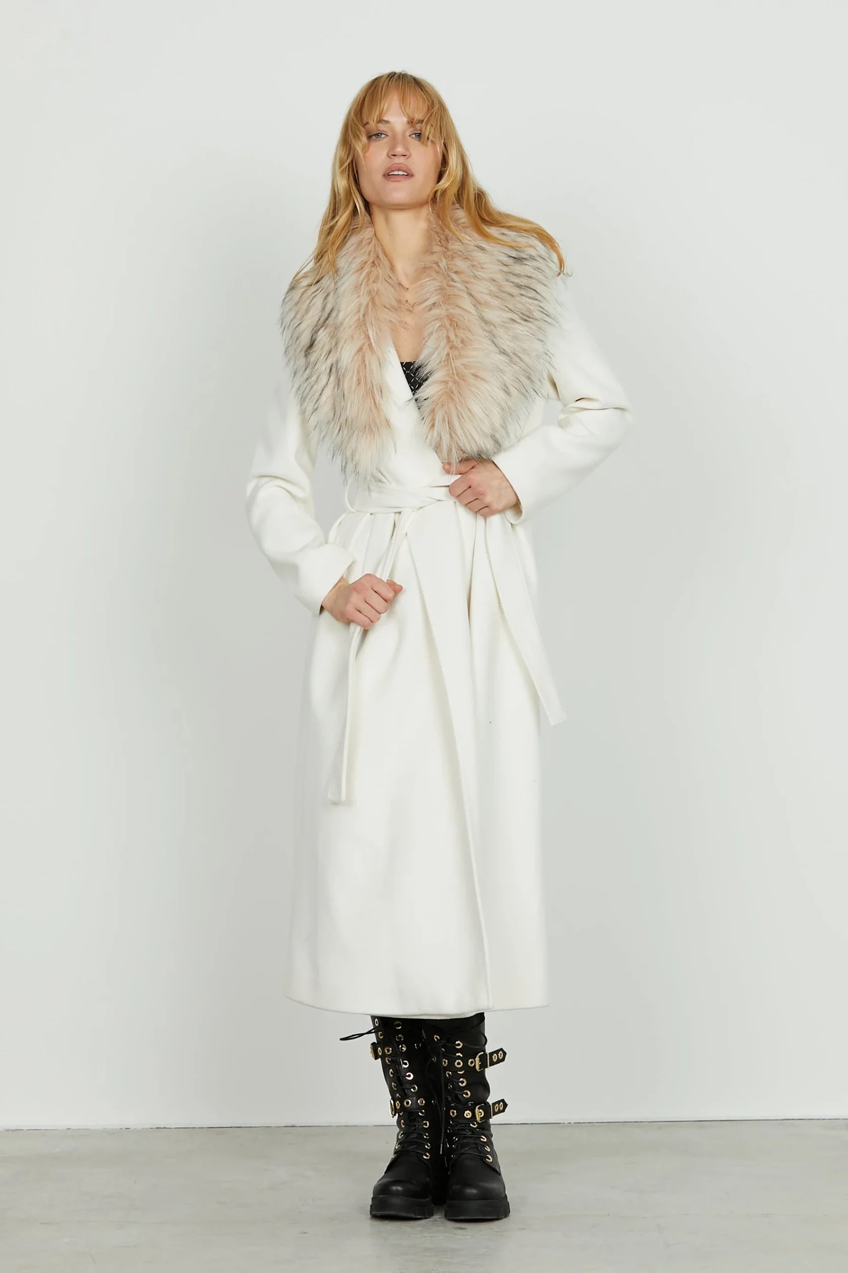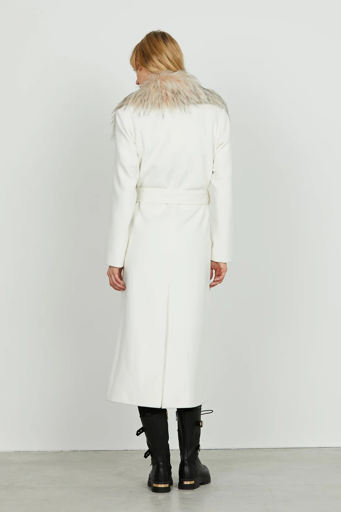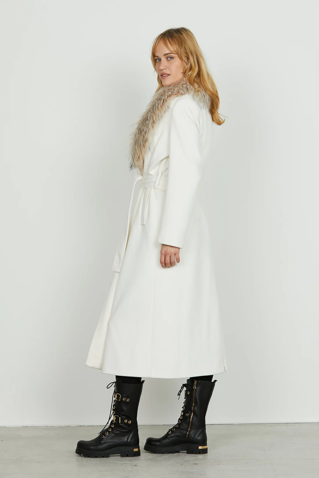 Abrigo largo ANNAPUR con mangas largas y cuello de piel desmontable. Incluye cinturón, camiseta y costuras.